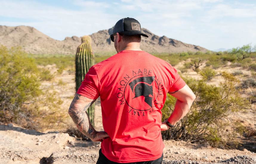 This stylish Molon Labe shirt is made from a comfortable polyester cotton blend material. Its comfortable fit and breathable fabric make it ideal for any occasion, whether you're out hiking, running, or relaxing. Plus, its short sleeves keep you cool even on the warmest days! Sizes small-4X-large.