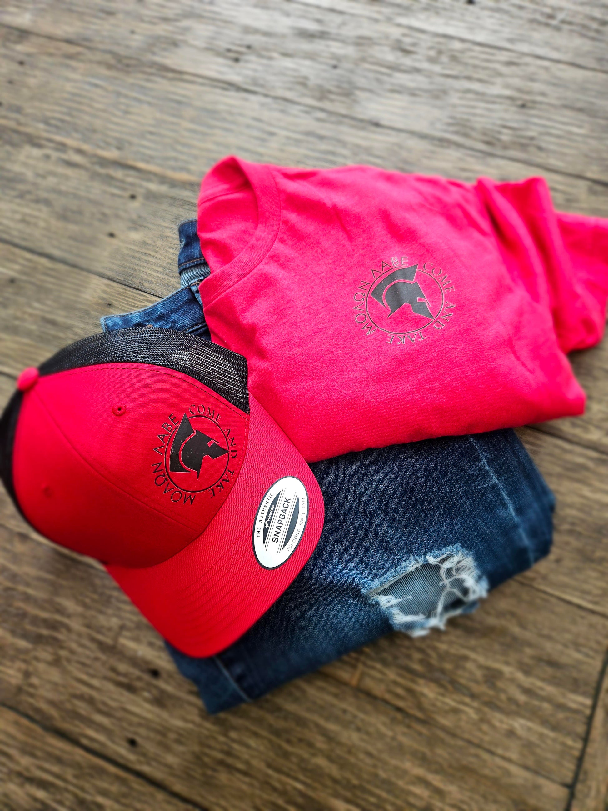 Black Molon Labe t-shirt with red and black snapback