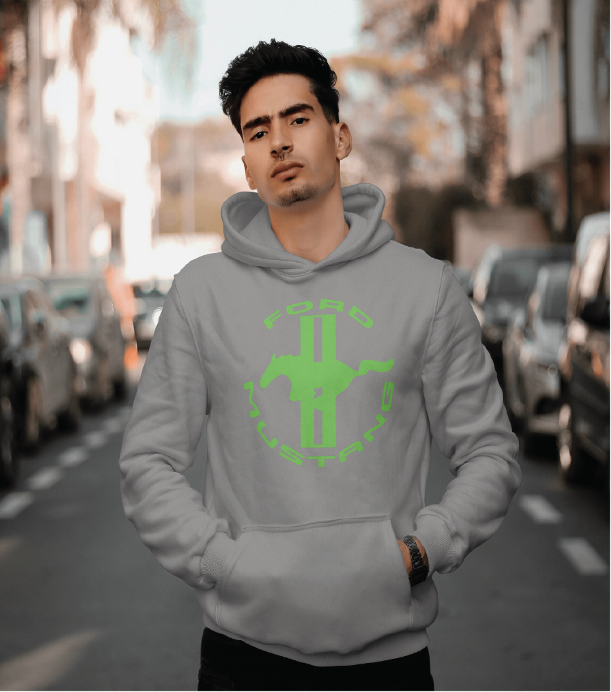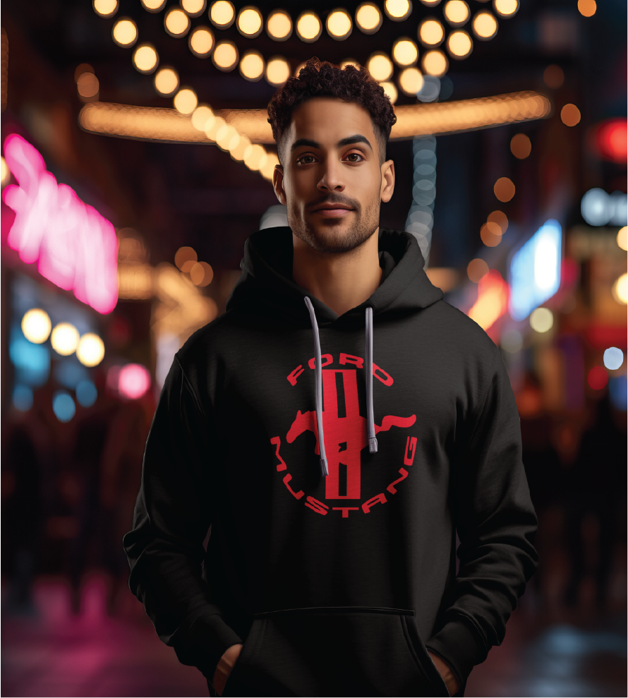 Pullover our Mustang Hoodie for men and women, featuring a polyester cotton blend for ultimate softness and warmth. Stand out with the new cursive Mustang GT print, available in custom colors and sizes ranging from Small to 3X. Stay cozy while expressing your love for this iconic car.