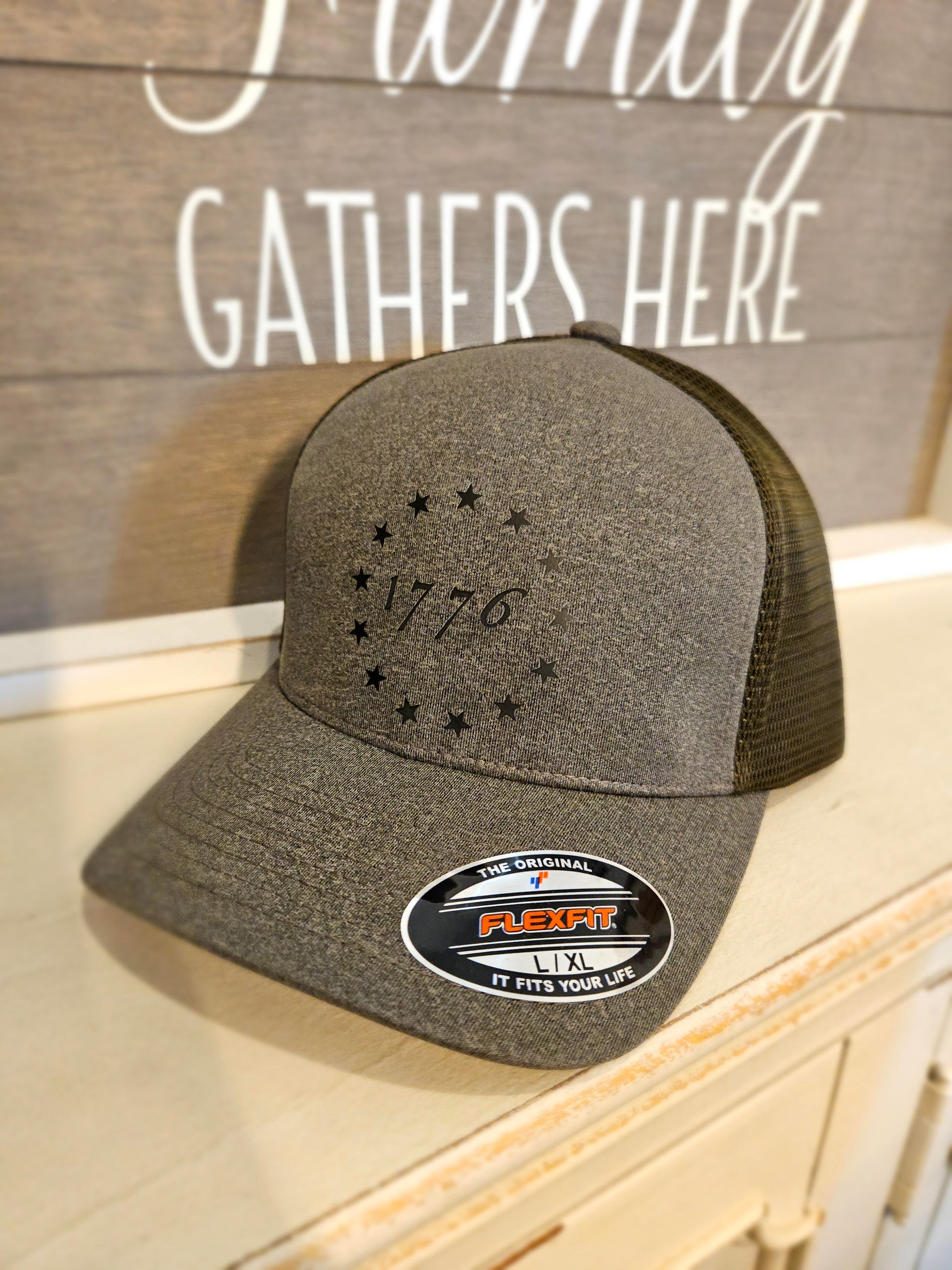 OD Green Flexfit hat w 1776 print