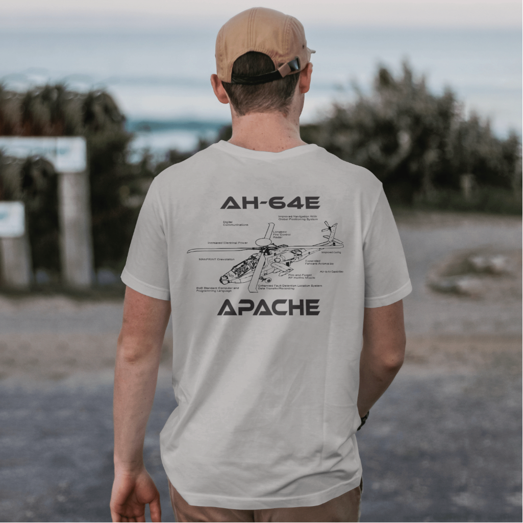 This short sleeve shirt in stone grey boasts a high-quality polyester-cotton blend, providing both comfort and durability. The striking AH-64 Apache print adds a touch of badassery to your wardrobe. Stay cool and stylish in this versatile shirt. Comes in sizes Small-3X
