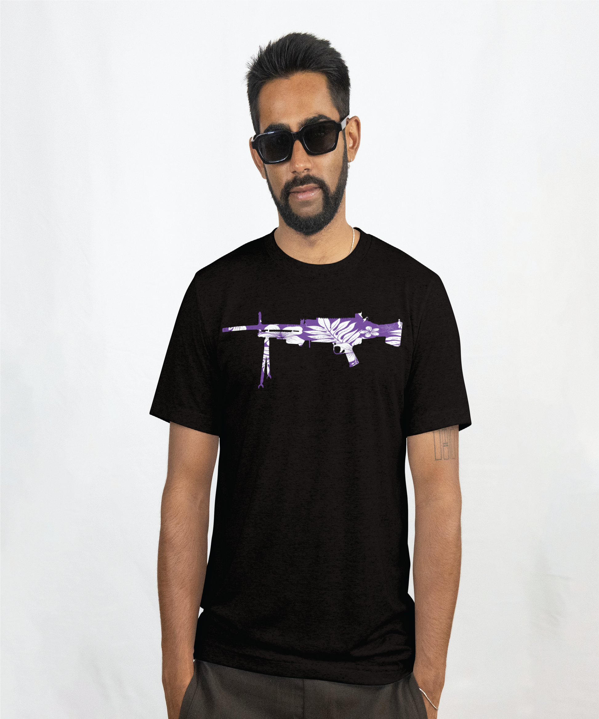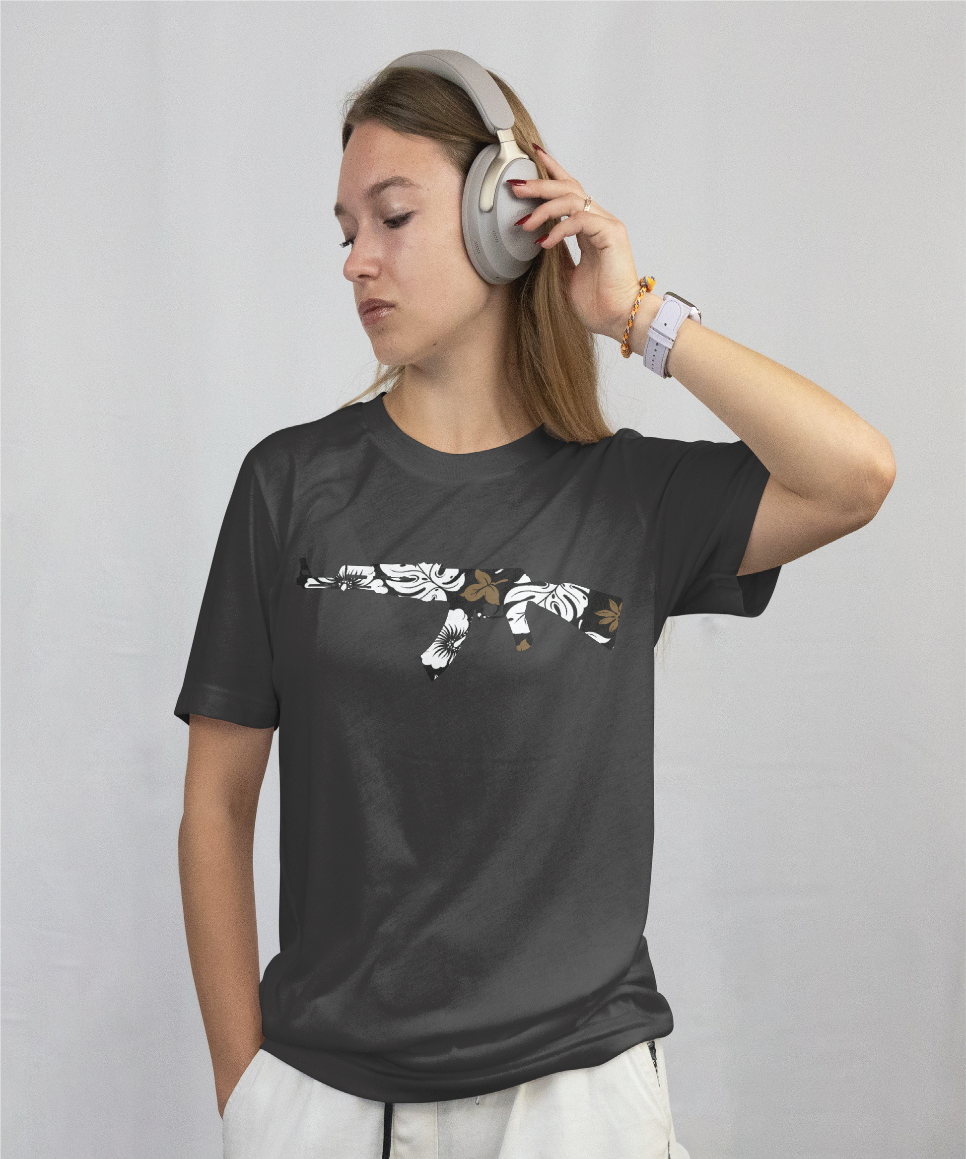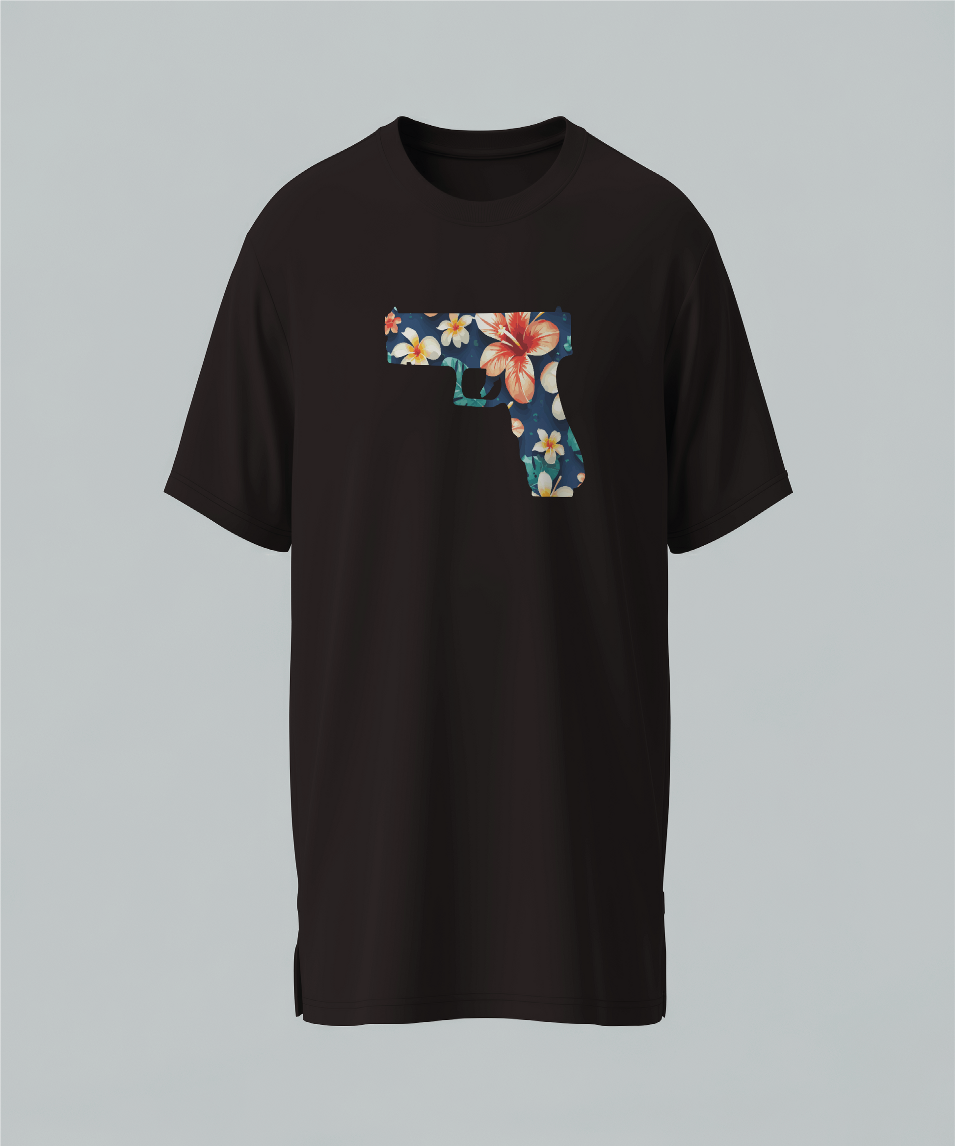 These Short Sleeve Easy Operator T-shirts combine a comfortable polyester-cotton blend with a selection of four distinctive Hawaiian floral designs. Available in sizes small through 3X, each shirt features detailed prints of your choice of firearm—the pistol, AK-47, MP-5, or heavy machine gun—offering a unique blend of style and personal expression suited for everyday wear. Crafted for durability and ease, these shirts provide a quality fit for enthusiasts seeking both comfort and a bold statement.