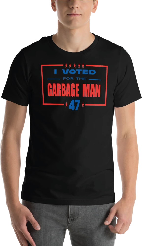 Show your support for this hardworking garbage man and 45/47th POTUS with our "I voted for the garbage man" short sleeve shirt. Made with a comfortable polyester cotton blend, it comes in sizes small through 3x. Wear it to proudly display your vote.