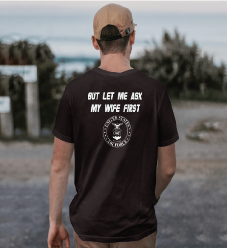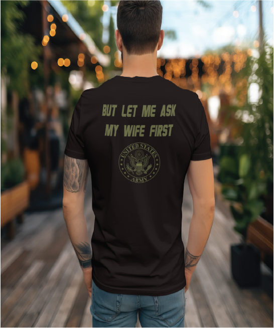 This short sleeve veteran shirt is made from a durable polyester cotton blend, providing comfort and style. With the humorous saying "I'm a veteran, I do what I want, but let me ask my wife first", this shirt is perfect for anyone who has served in the Army, Navy, Air Force, Marines, or um.... Coast Guard lol. Available in sizes Small - 3X, it can be customized to proudly represent your branch of service.